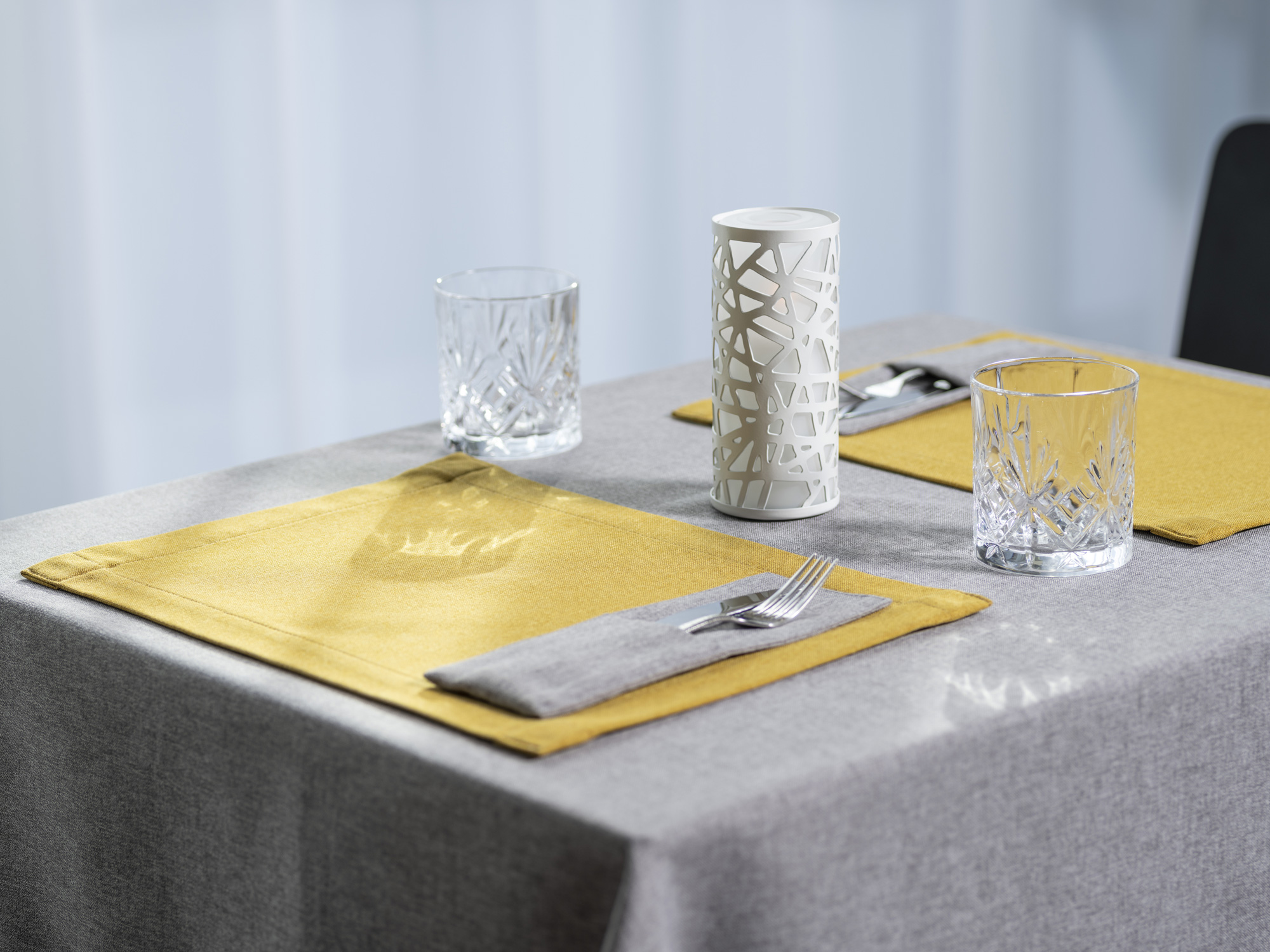 Our new line Estelle is not only liquid-repellent and suitable for upholstery. It also has a table-protecting and ant-slip backside.